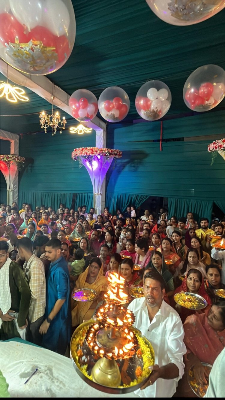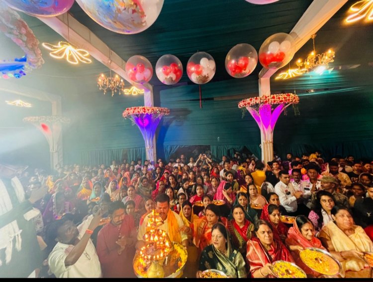 108 पूजा थाल से सत्तीचौरा में माता जी महाआरती एवं आतिशबाजी की गयी