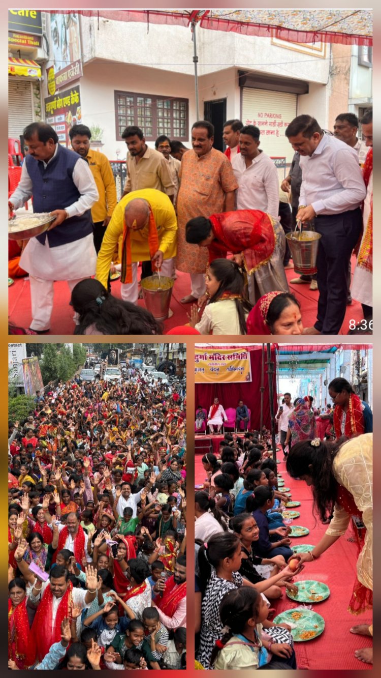 कन्याभोज में शहर के बहुत वार्डों से अलग अलग पार्षद, पूर्व पार्षदों के साथ आंगनबाड़ी दीदी एवं अन्य सेविका कन्या भोज में कन्यामाताओ को लाया गया