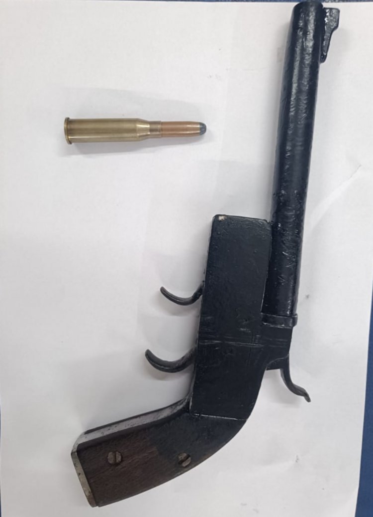 जप्ती- एक बलेनो कार, देशी कट्टा, जिन्दा कारतुश, 05 नग मोबाईल
