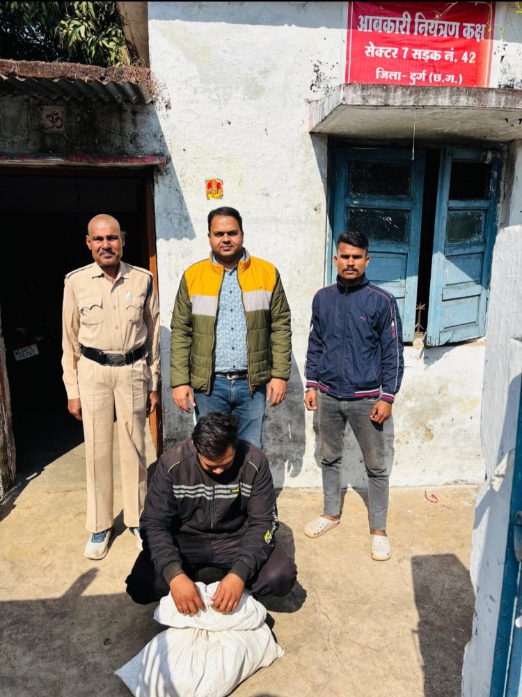 दुर्ग / आबकारी आयुक्त श्रीमती आर. संगीता के निर्देशानुसार एवं कलेक्टर दुर्ग अभिजीत सिंह के दिशा-निर्देशानुसार व सहायक आयुक्त आबकारी सी.आर. साहू के मार्गदर्शन में 31 दिसम्बर 2025 को गस्त के दौरान आबकारी विभाग जिला दुर्ग वृत-भिलाई क्रमांक-02 के द्वारा अवैध शराब के परिवहन की सूचना मिलने पर त्वरित विधिवत कार्यवाही कर आरोपी गीतेश कुमार देशलहरे स्थान यादव मोहल्ला बोरसी भाटा के कब्जे से मध्य प्रदेश राज्य में विक्रय हेतु अधिकृत 12 नग प्लास्टिक बोतल बॉम्बे स्पेशल व्हिस्की (750 एम.एल.) एवं आरोपी एवं एवन निषाद, पिता त्रिभुवन निषाद उम्र 27 वर्ष ग्राम ननकट्टी के कब्जे से 50 नग पाव देशी मदिरा शोले मसाला कुल मात्रा 18 बल्क लीटर जिसका बाजार मूल्य 10760 रूपये है तथा एक हीरो होंडा स्प्लेन्डर वाहन क्रमांक CG 04A 0976 जिसका बाजार मूल्य लगभग 30,000 रूपये, कुल कीमत लगभग 40760 रूपये जप्त किया गया। मौके पर आरोपी के कब्जे से अत्यधिक मात्रा में विदेशी शराब पाए जाने एवं आरोपी द्वारा छत्तीसगढ़ आबकारी अधिनियम की धारा 34(2) का उल्लघंन किये जाने पर आरोपी के विरूद्ध धारा 34(2), 36, 59(क) में दर्ज कर गिरफ्तार किया जाकर न्यायिक अभिरक्षा में जेल दाखिल किया गया। इस प्रकरण की विवेचना सहायक जिला आबकारी अधिकारी सुप्रिया शर्मा द्वारा की जा रही है। इस प्रकरण में आबकारी उप निरीक्षक हरीश पटेल, प्रियंक ठाकुर, भोजराम रत्नाकर, आबकारी मुख्य आरक्षक भरथरी, आबकारी आरक्षक संदीप तिर्की एवं ड्राइवर दीपक राजू, प्रकाश राव एवं धनराज का योगदान रहा।