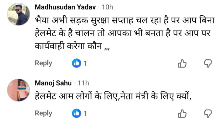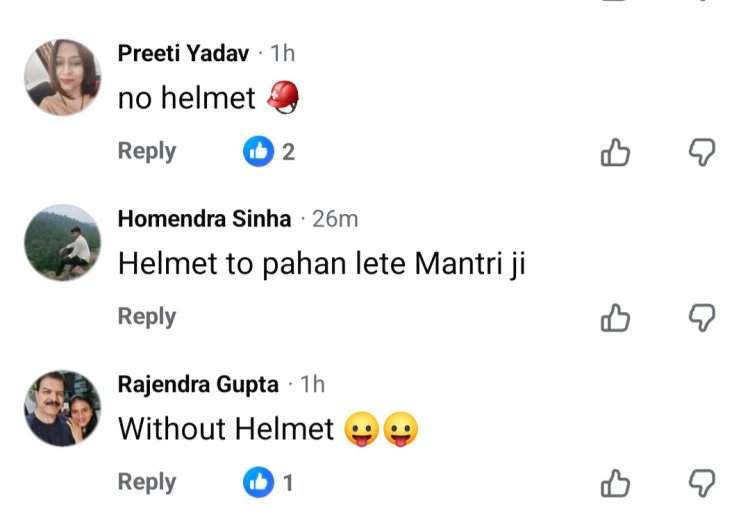 वहीं एक अन्य कमेंट में सवाल उठाया गया, “हेलमेट आम लोगों के लिए है, नेता मंत्री के लिए क्यों?”