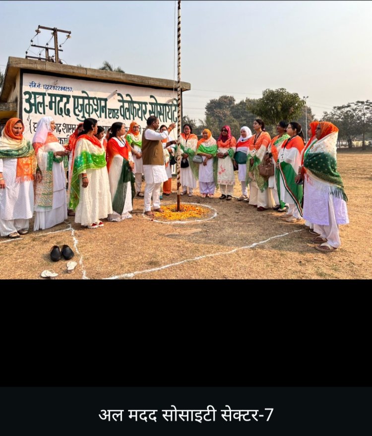 अल मदद एजुकेशन एंड वेलफेयर सोसाइटी की ओर से सेक्टर-7 स्थित सड़क-25 के मैदान में ध्वजारोहण पार्षद लक्ष्मीपति राजू ने किया। ध्वजारोहण को सफल बनाने में का योगदान रहा। इस अवसर पर क्लास 1 से 8 तक के बच्चों के लिए ड्राइंग-पेंटिंग, कविता और नृत्य की प्रतियोगिता सड़क-19 क्वार्टर 6बी में रखी गई। जिसमें प्रथम द्वितीय तृतीय और सांत्वना वर्ग में बच्चों को सम्मानित कर उन्हें प्रोत्साहित किया गया। सोसायटी की ओर से गणतंत्र दिवस पर फिजियोथैरेपिस्ट डॉक्टर दुर्गेश शर्मा ने बच्चों को विशेष तौर पर व्यायाम और स्वस्थ रहने के लाभ बताए। आयोजन को सफल बनाने में अल मदद समिति की अध्यक्ष अंजुम अली, कौसर खान, कैसर इकबाल, नीलोफर सगीर, शबाना सिद्दीकी, आयशा फरहीन, रेहाना परवीन, शाहीन खान, लीना तजमीन, शम्सुन्निसा, दरख्शां अंजुम, दिलशाद, नरगिस, फरहीन अली और फरीदा अली सहित अन्य लोगों का योगदान रहा।