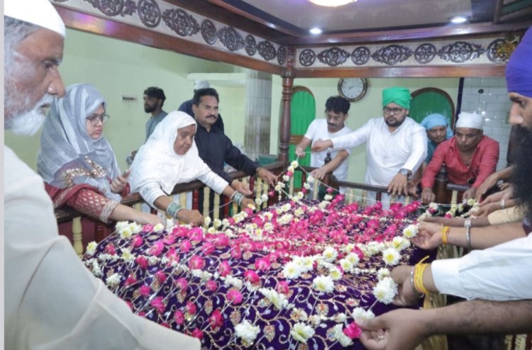 फिर चादर पोशी की रस्म अदा की गई। बाबा के खिदमत गुज़ार के आशियाने से लाई गई संदल बाबा हुजूर में पेश की गई। इस मौके पर सभी के लिए खास दुआएं भी की गई। ताज दरबार में गद्दीनशीन मोहम्मद सादिक ताजी का इस्तकबाल फूलों से किया गया।